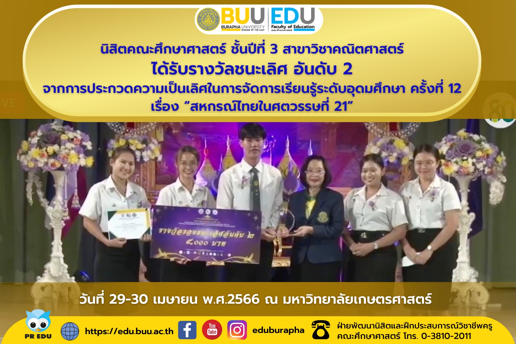 ในโอกาสได้รับรางวัลรองชนะเลิศอันดับ 2 จากการประกวดความเป็นเลิศในการจัดการเรียนรู้ระดับอุดมศึกษา ครั้งที่ 12