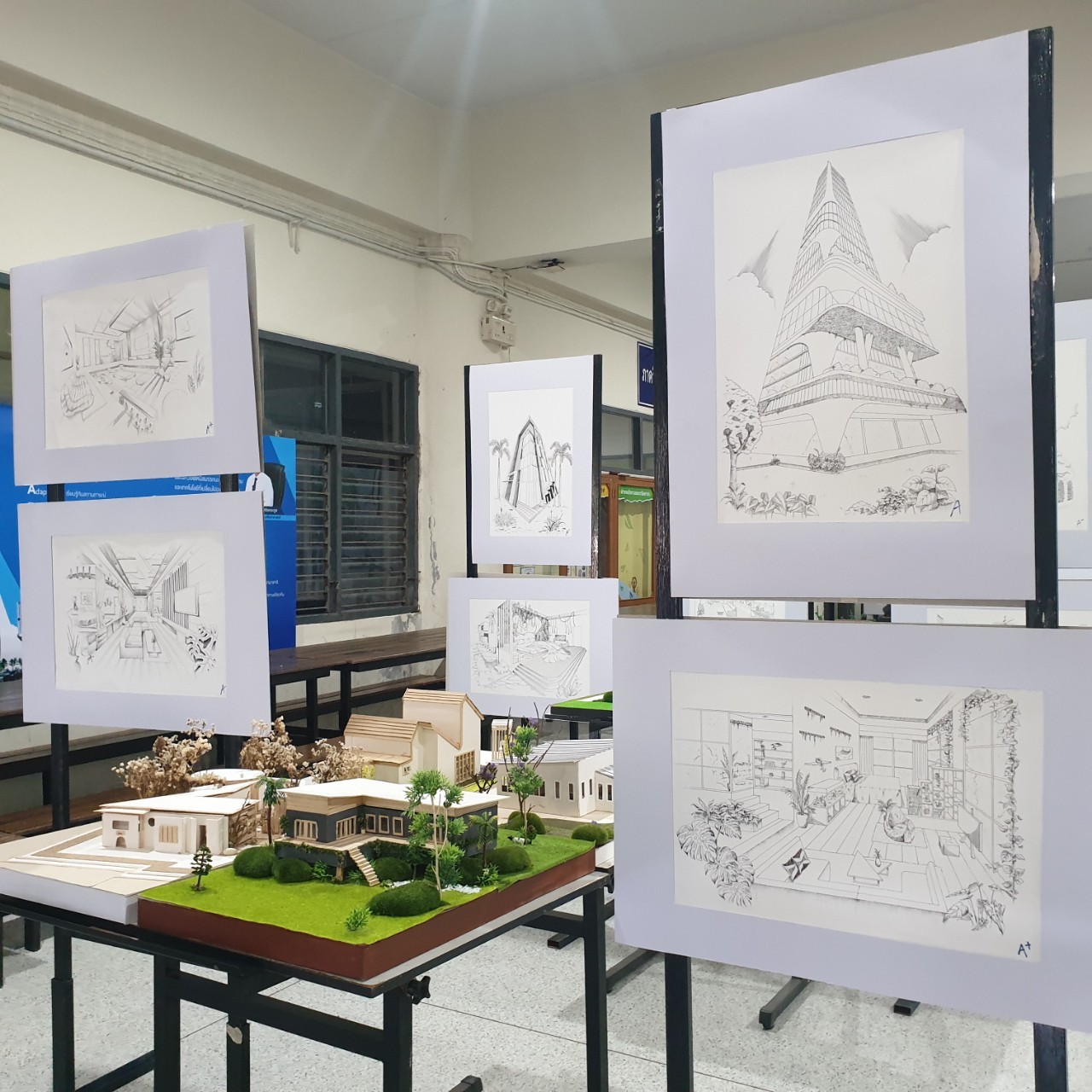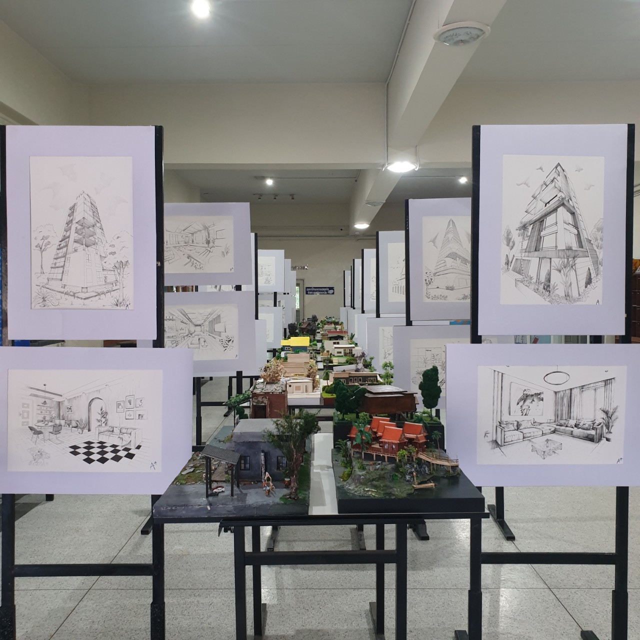 หน้าหลัก กิจกรรม รายละเอียด ผลงาน ART EXHIBITION PERSPECTIVE & DESIGN นิสิตชั้นปีที่ 3 สาขาวิชาศิลปศึกษา คณะศึกษาศาสตร์ จัดผลงาน ART EXHIBITION PERSPECTIVE & DESIGN ณ โถงชั้น 1 อาคาร 60 พรรษามหาราชินี 1